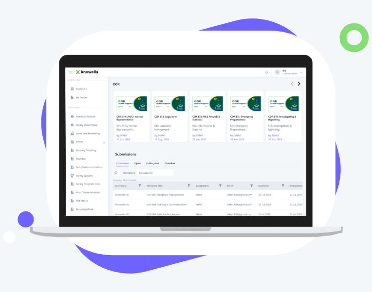 Knowella offers a smarter way to handle safety audits, documentation, and regulatory requirements through our customizable solutions.  Ready to take the stress out of COR management? Get Started Today!
